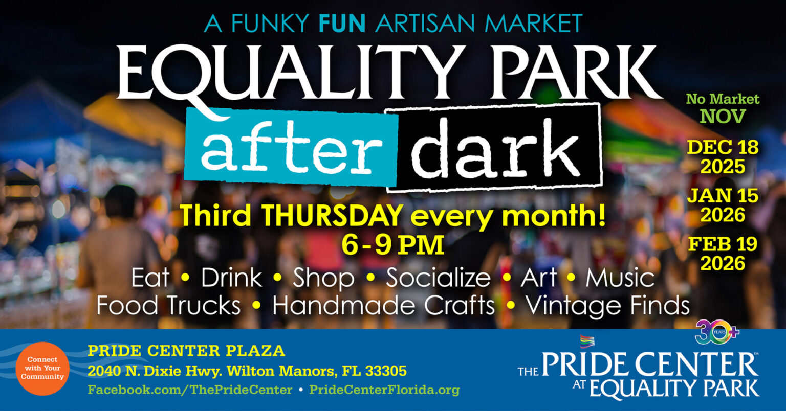 Peruse the food trucks and vendors at this artisan, fun, funky market! Eat, shop, and socialize from 6 PM to 10 PM! Try the incredible food trucks, vendors, artists, authors, local businesses, and craftspeople at Equality Park After Dark!