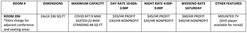 To see the photos of each available room, click the images below. If you would like more information about each room, check out the Rental Rates in the Rentals Resources sidebar. →